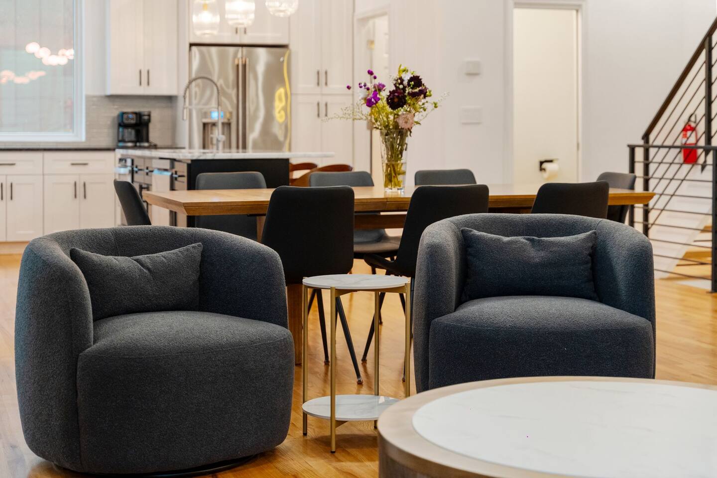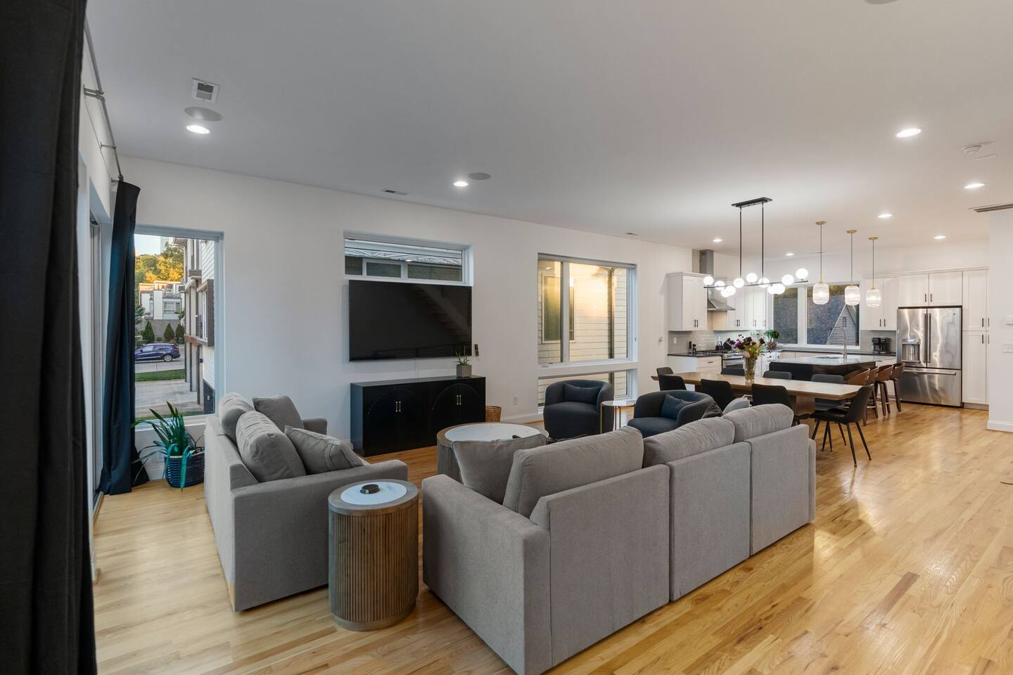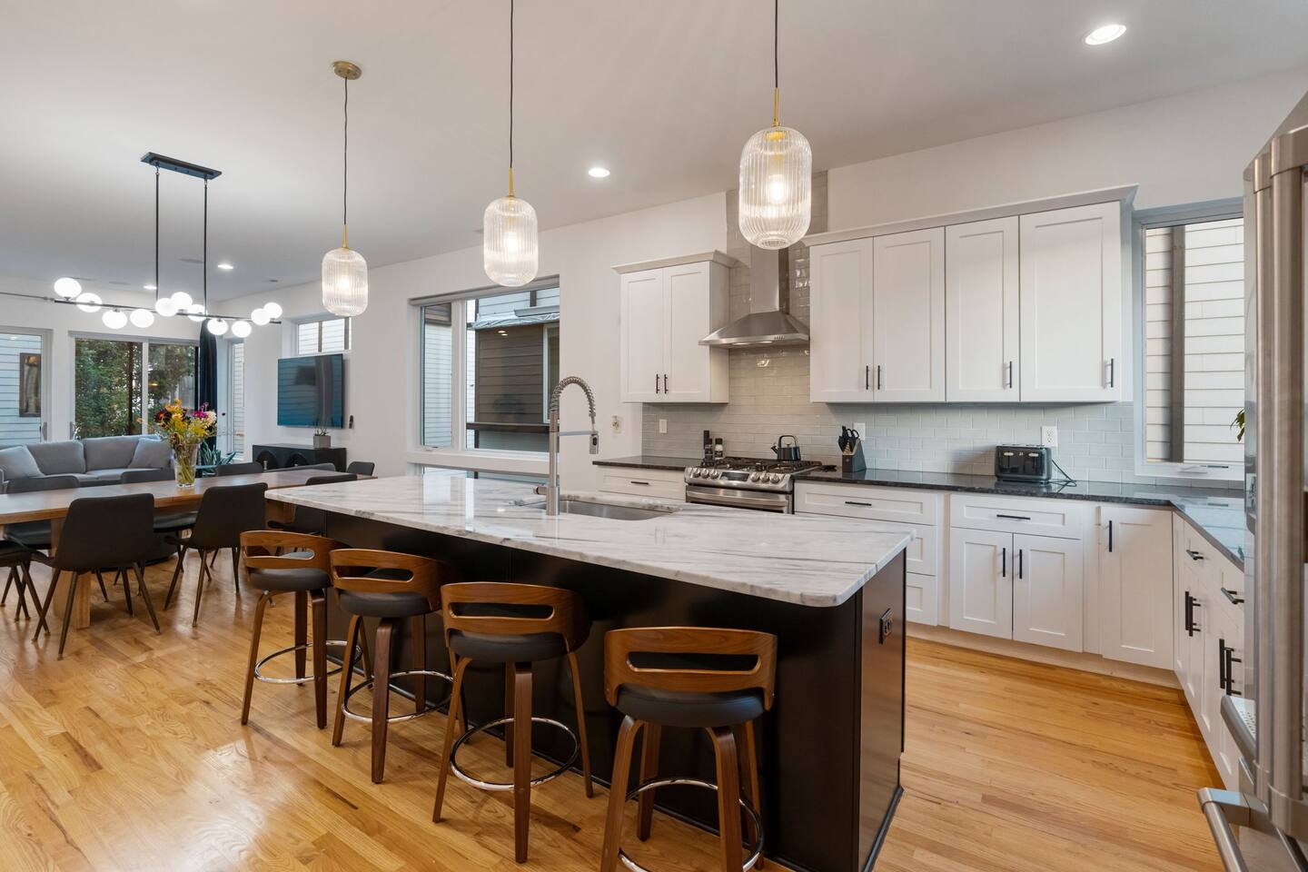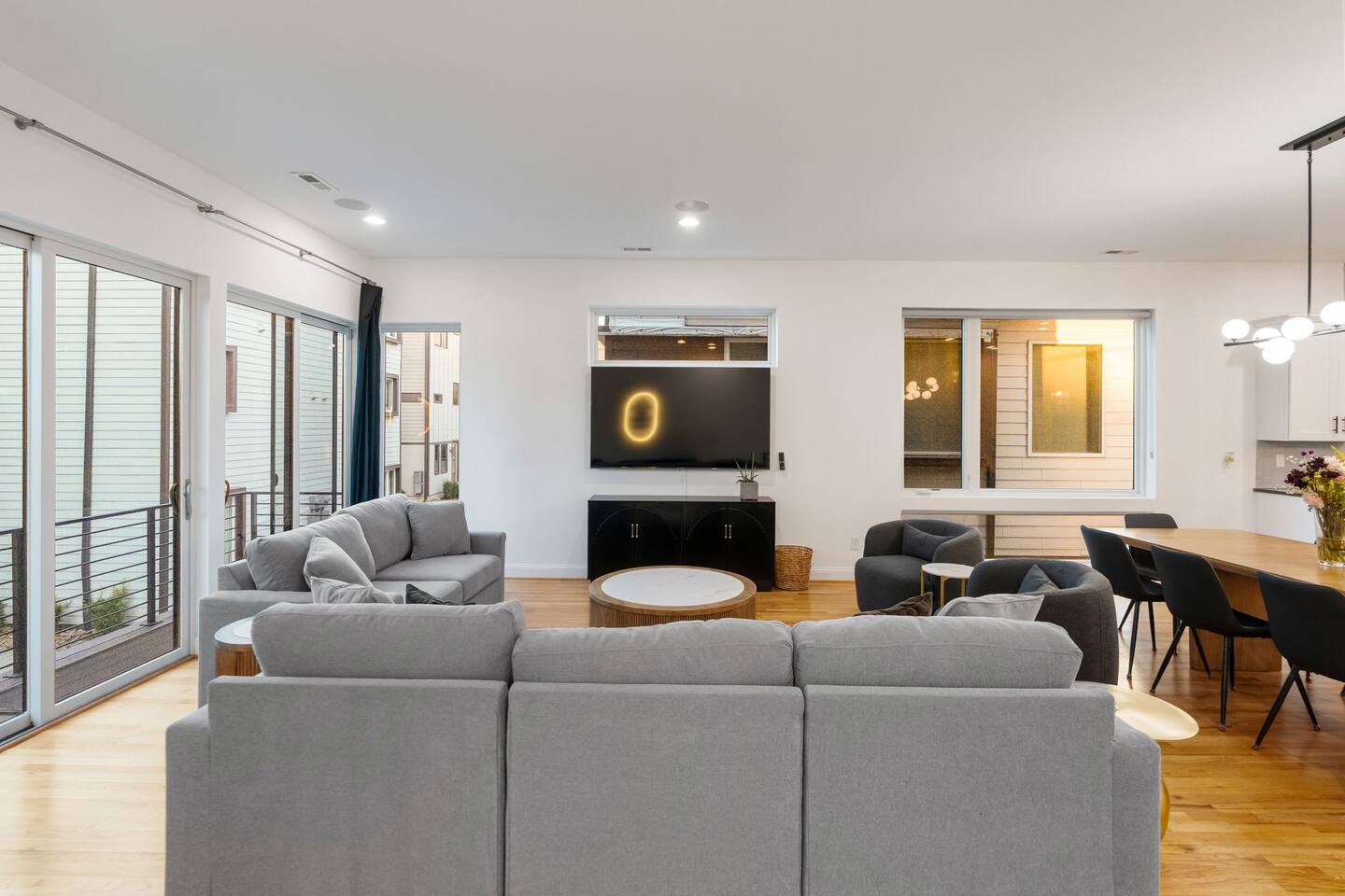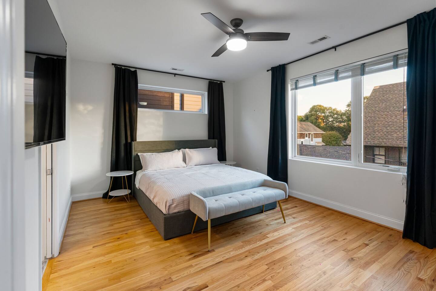 The Uptown Terrace, a perfect getaway nestled in Uptown Charlotte. This 4 story modern condo features a 800sqft rooftop terrace with amazing city views. It’s the perfect place to sip your coffee in the morning or pregame for events at BOA Stadium/Truist Field. BTW, it is only a 12 min walk! Ideal for both relaxation and adventure. -Watch the fireworks from your private rooftop. -3 king bedrooms each with private bathrooms. -Fully stocked kitchen -High-speed WiFi -2car garage + additional spot