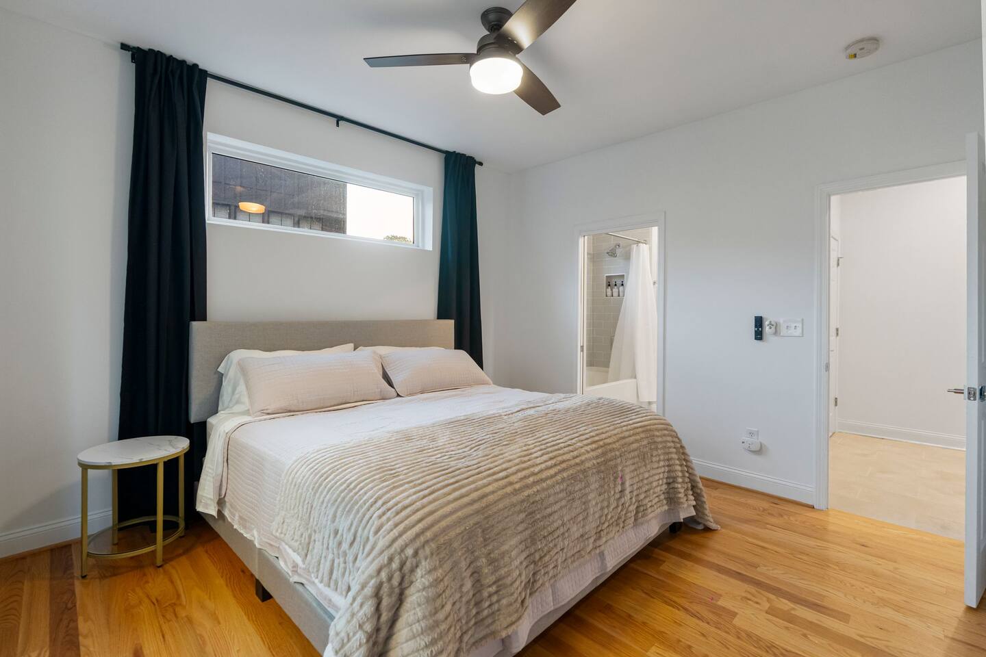 All BRAND NEW beds, linens, furniture! It is 4 stories so there are a lot of stairs. There is a guest bedroom and bathroom on the main floor. Kitchen and living room are on the second floor. Master and second guest bedrooms and bathrooms are on the third floor. Obviously the 4th floor is the rooftop terrace. It is worth the workout!